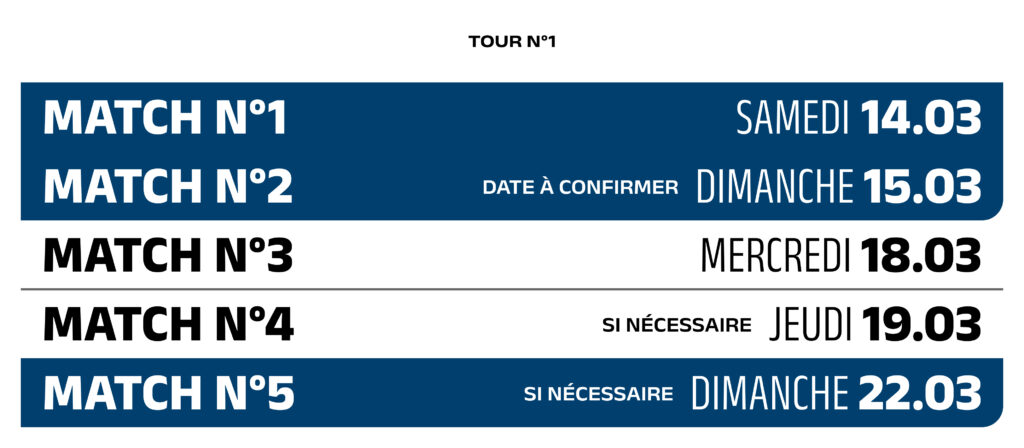 → Les matchs 3 et 4 (si nécessaire) ont lieu chez le moins bien classé.